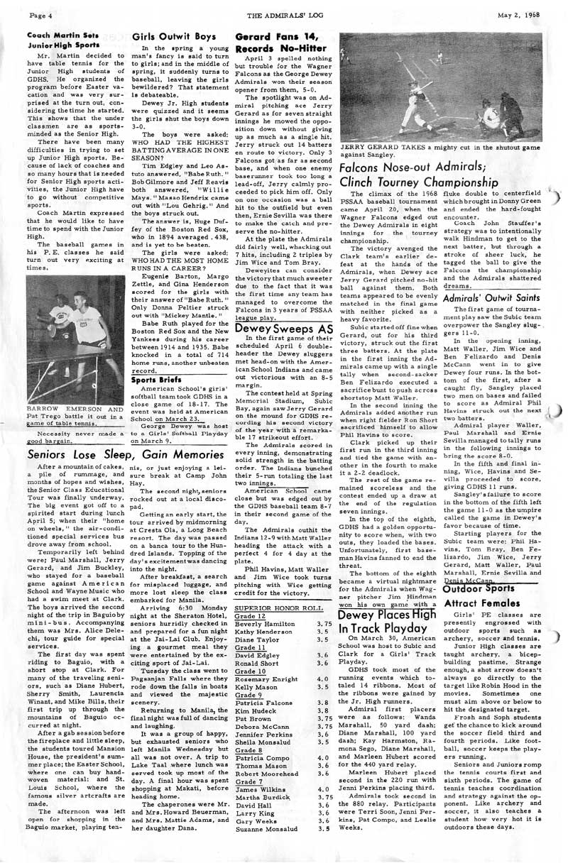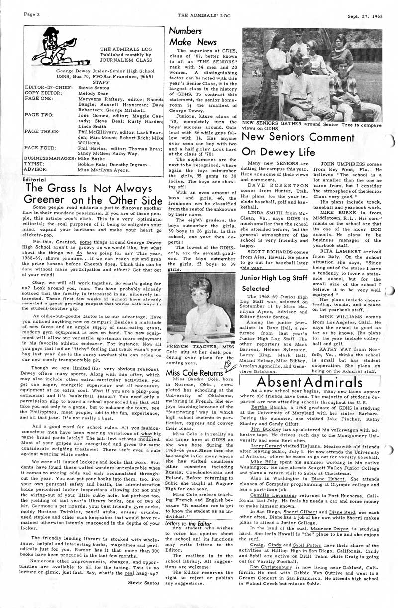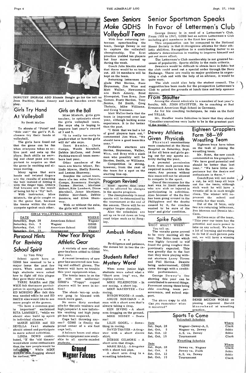 Whatever the case, George Dewey High School newspapers are provided by contributions from fellow alumni. If you have a some editions of the Admiral's log (or any other literary publications from GDHS) we are very interested in adding them to share to our fellow Alumni. Newspapers are divided into decades.
