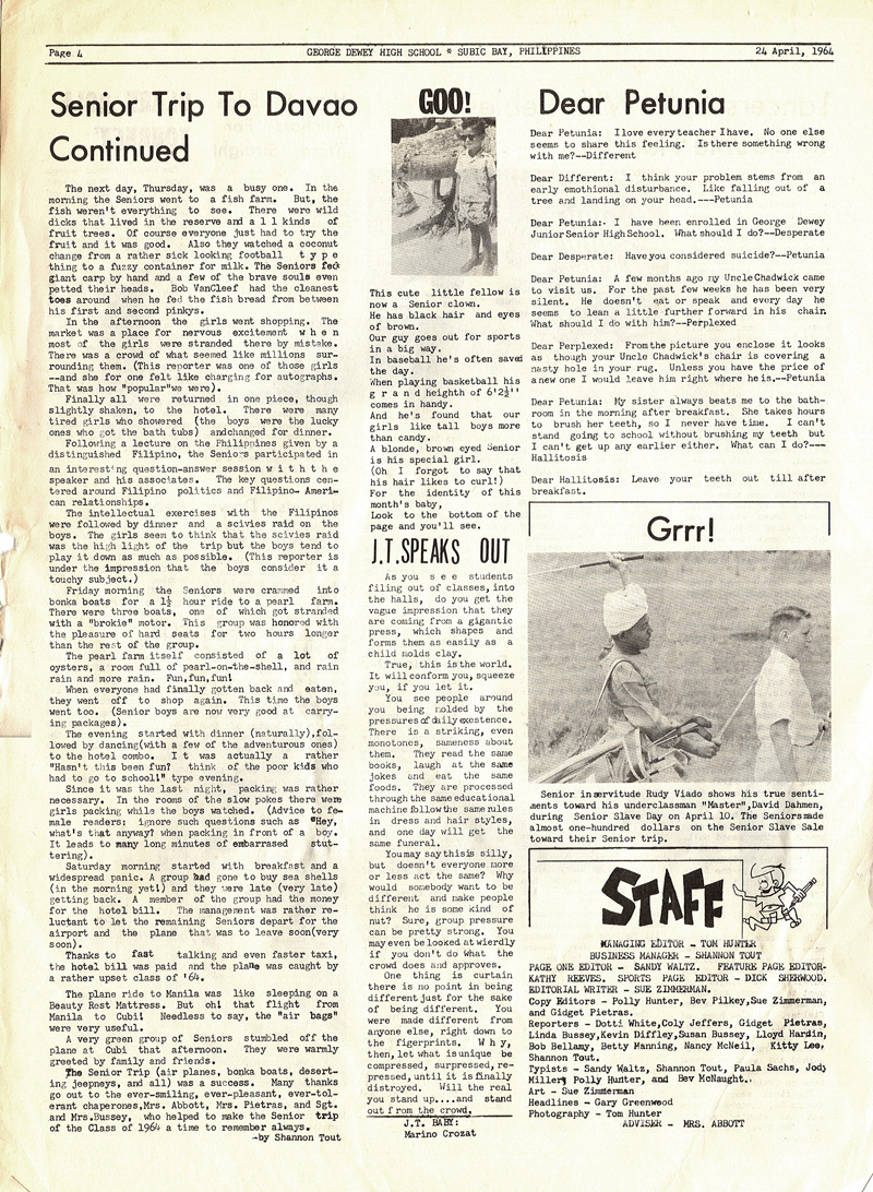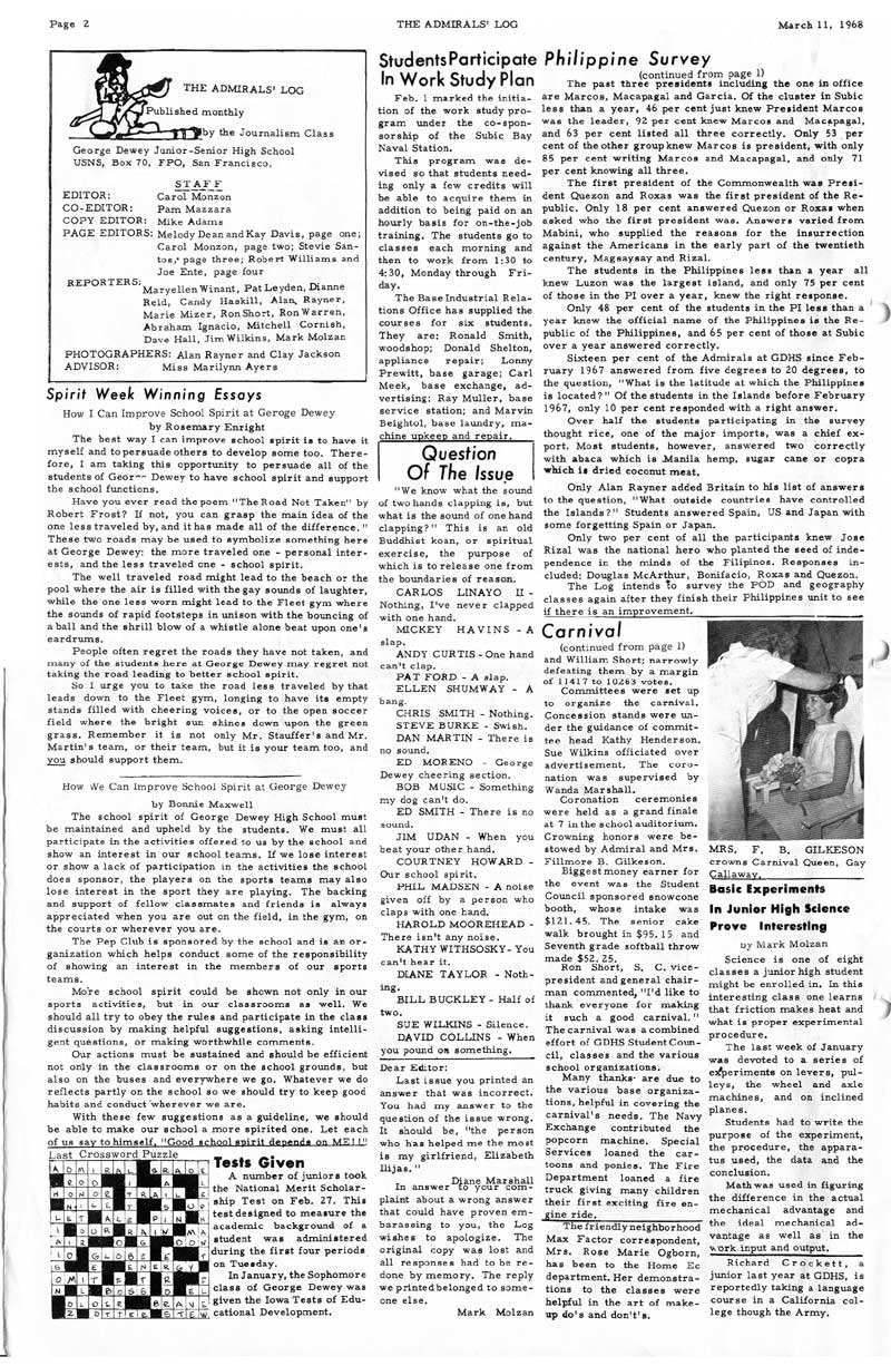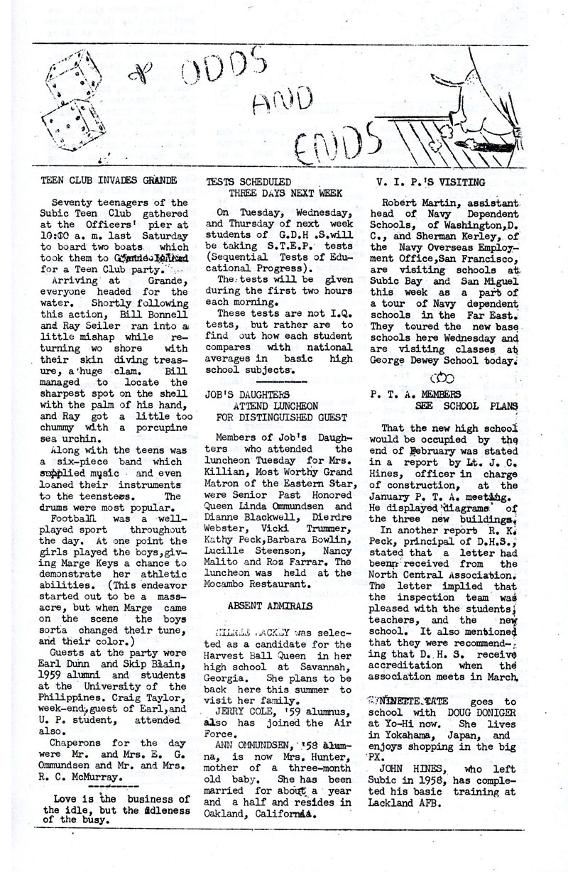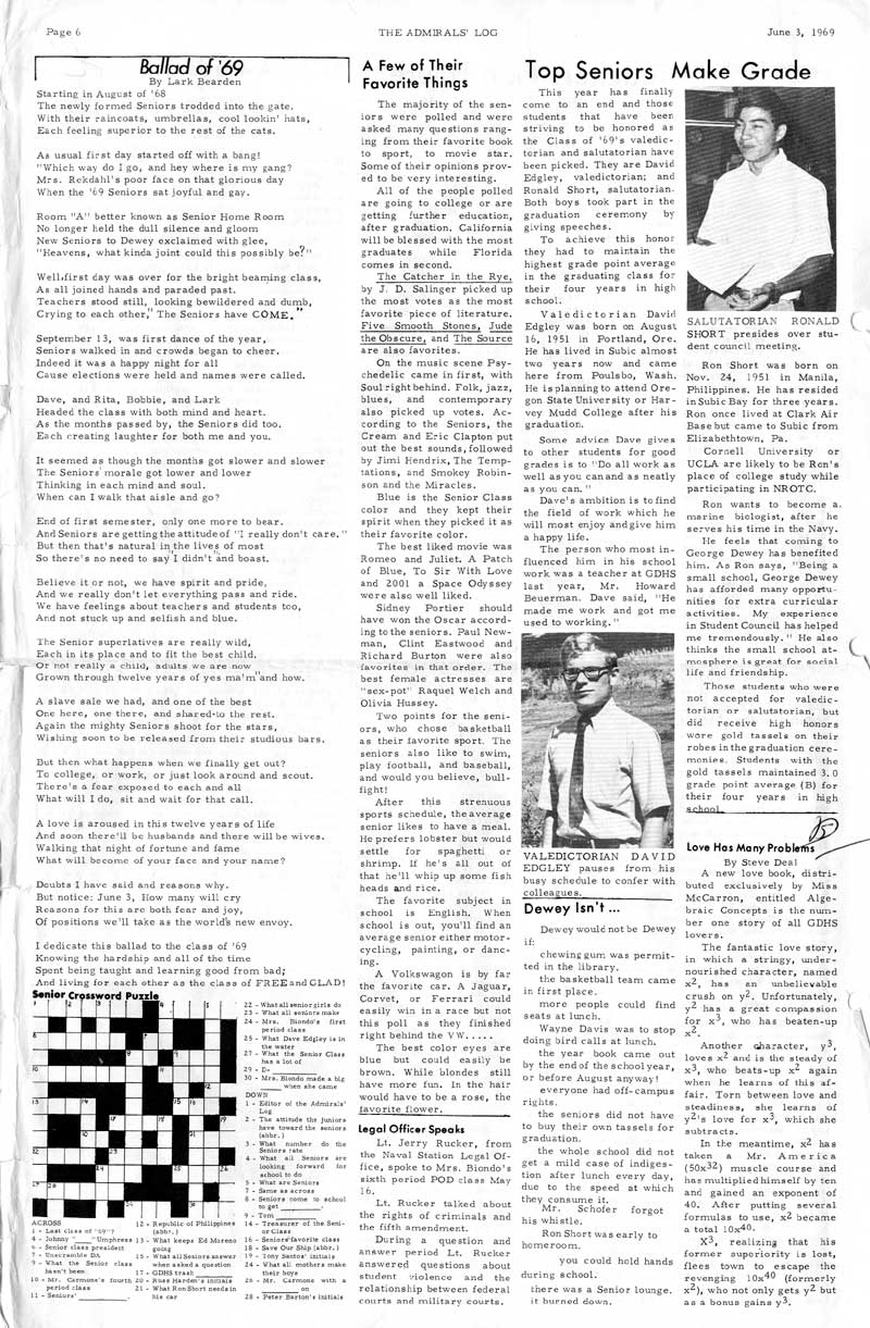 Whatever the case, George Dewey High School newspapers are provided by contributions from fellow alumni. If you have a some editions of the Admiral's log (or any other literary publications from GDHS) we are very interested in adding them to share to our fellow Alumni. Newspapers are divided into decades.